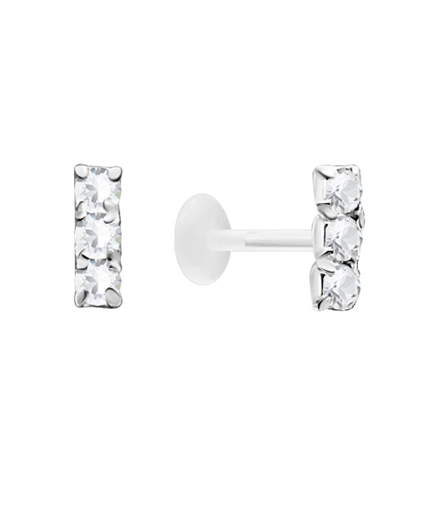 Enhance your individuality with our exquisite 925 sterling silver tragus jewelry. Crafted with precision, this petite piece boasts a size of 1.5 x 5mm for a comfortable fit. Adorned with three delicate 1mm crystals, it's a charming accessory that effortlessly combines elegance and style.