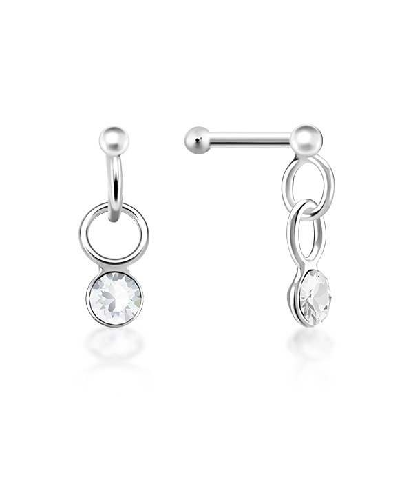 Introducing our 925 sterling silver nose stud, a testament to exquisite craftsmanship and timeless beauty. Embellished with two dazzling 2mm crystals, this stud adds a touch of sparkle to your appearance. With a sleek body dimension of 2mm and a substantial 0.14g silver weight, it's the perfect accessory to enhance your natural charm.
