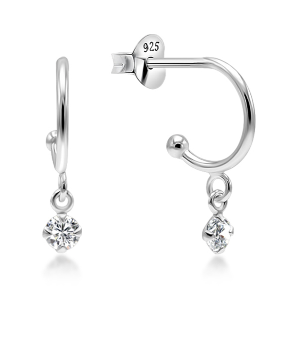 Sterling Silver Half Hoop Earrings with Cubic Zirconia