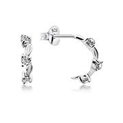 Sterling Silver Half Hoop Stud Earrings with Cubic Zirconia